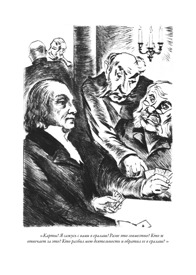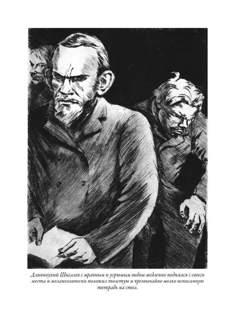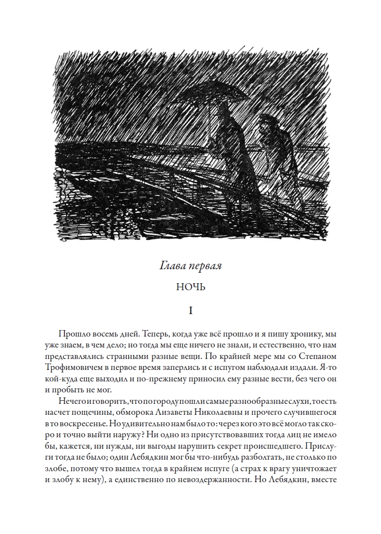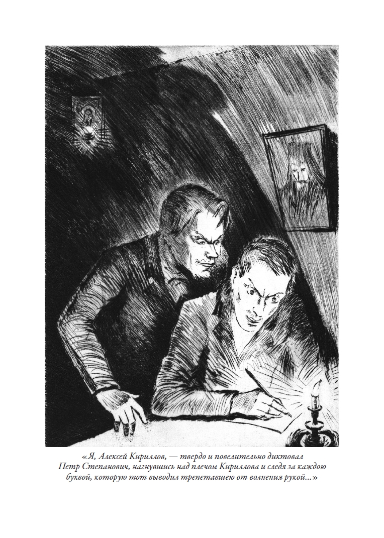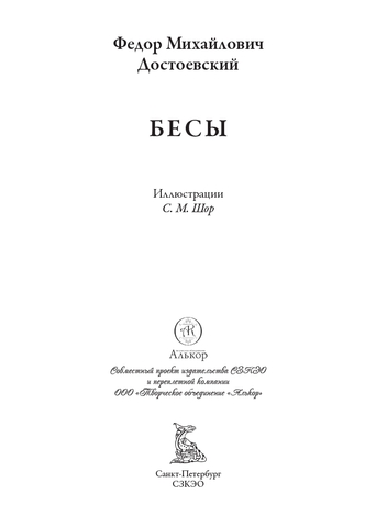 Издание сопровождают выполненные в середине 1930-х гг. иллюстрации выпускницы Петербургской Академии Художеств Сарры Шор (1897—1981). Будущая художница появилась на свет в небольшом уездном городке Волынской губернии за три года до начала XX века. Казалось, ей была уготована обычная судьба сотен тысяч еврейских девушек, живущих в российской глубинке. Однако у Сарры проснулась тяга к рисованию. Сначала Сарра поступила в Киевское художественное училище, где впервые познакомилась с европейским авангардом, а потом перебралась в Санкт-Петербург. Со временем она примкнула к новому художественному объединению — «Культур-Лиге»; входившие в нее еврейские художники стремились продвигать в жизнь новое искусство, сочетая его с национальными мотивами. В этом русле развивалось и творчество Сарры Шор. Она рисовала эскизы к театральным постановкам, а потом увлеклась книжной графикой. Книги с рисунками С. Шор печатали ведущие издательства Москвы и Ленинграда. Эти издания неоднократно демонстрировались на международных выставках книжного искусства, в том числе и за рубежом: в Кёльне, Амстердаме, Нью-Йорке, Берлине и Лондоне. Примером таких работ Шор являются и ее иллюстрации к «Бесам» Достоевского.