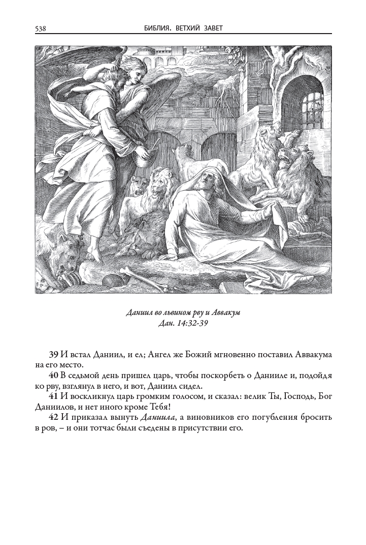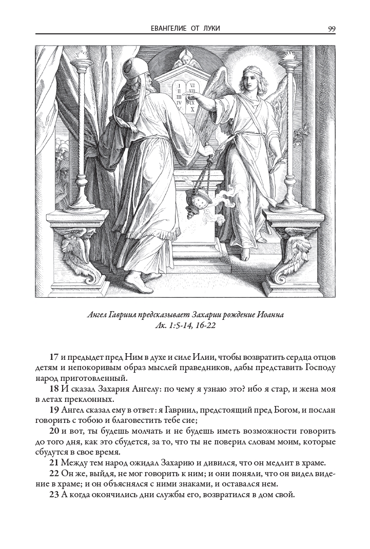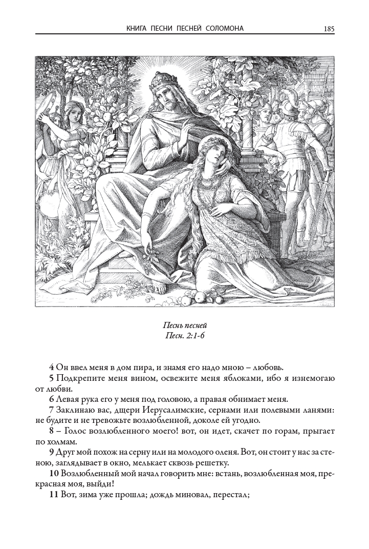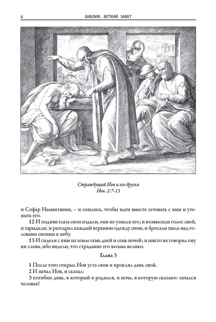 Иллюстрации к книгам (160 к Ветхому завету и 80 к Новому завету) выполнил немецкий живописец, рисовальщик и гравер академического направления, профессор дрезденской Академии искусств и директор Картинной галереи в Дрездене Юлиус Фейт Ханс Шнорр фон Карольсфельд (1794–1872). Еще в марте 1817 года он стал членом Союза святого Луки, или общества назарейцев — творческого объединения немецких и австрийских художников романтического направления начала XIX века, стремившихся возродить эстетику и художественный стиль мастеров Средневековья и раннего итальянского Возрождения. С 1824 года Шнорр вынашивал идею создания цикла иллюстраций для Библии, и наконец в 1860 году его планы были реализованы: в лейпцигском издательстве Георга Виганда вышла «Библия в картинках» — книга, со временем переведенная на множество языков и многократно переиздававшаяся в разных странах мира.