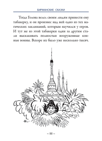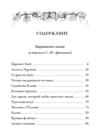 В сборник вошли народные бирманские сказки в пересказе Сергея Юрьевича Афонькина. Книгу украшают 96 иллюстраций известного ленинградского художника Николая Михайловича Кочергина (1897–1974).