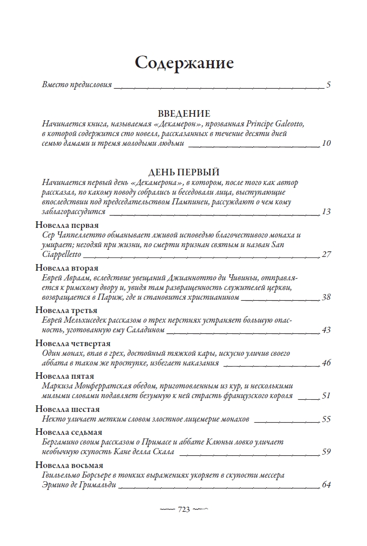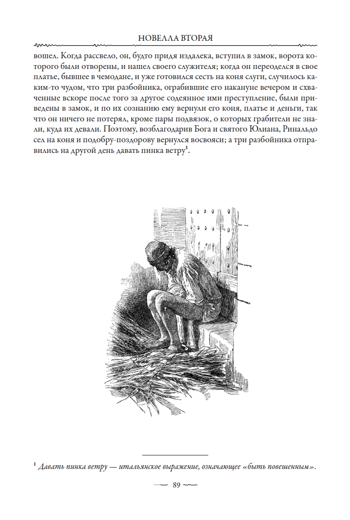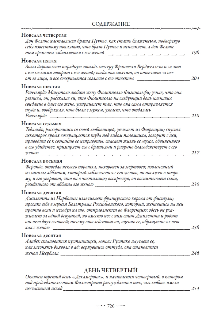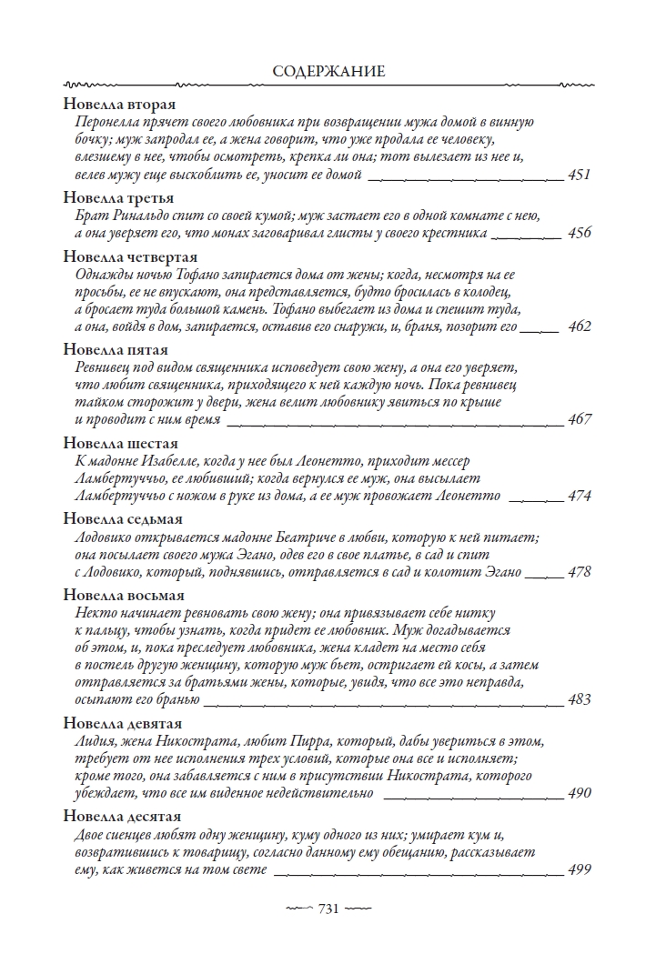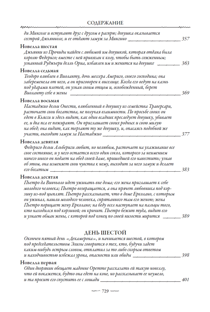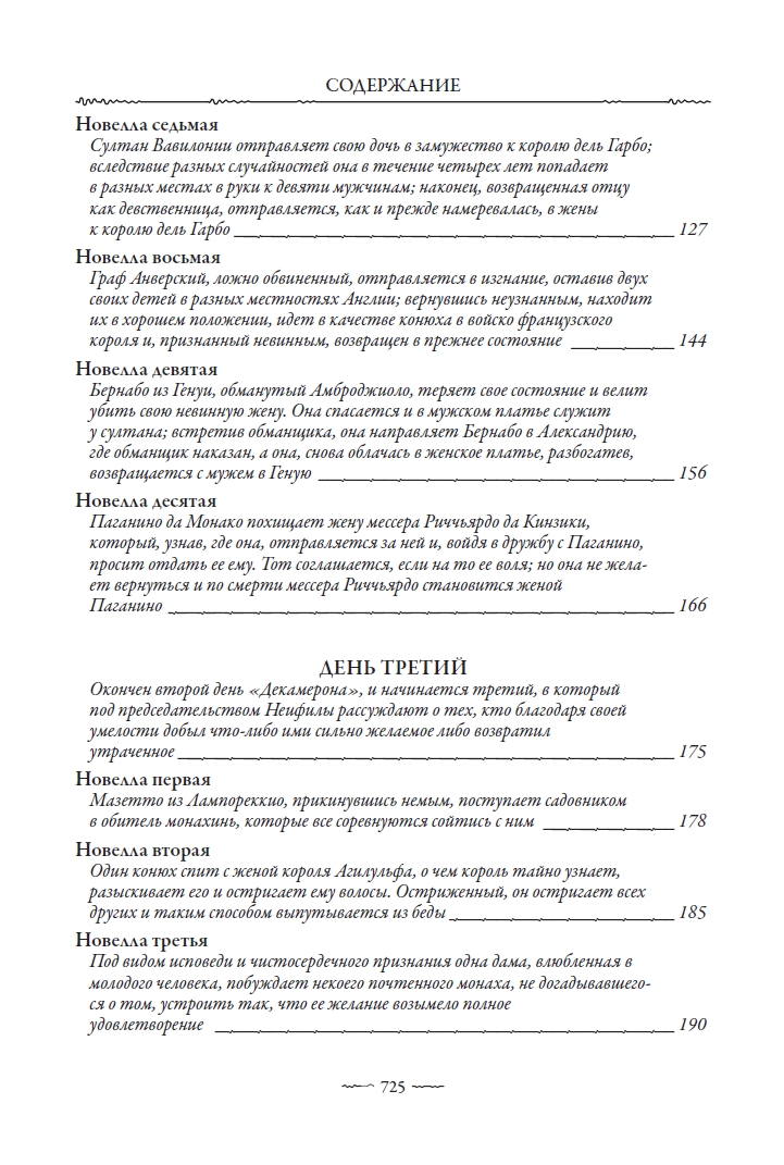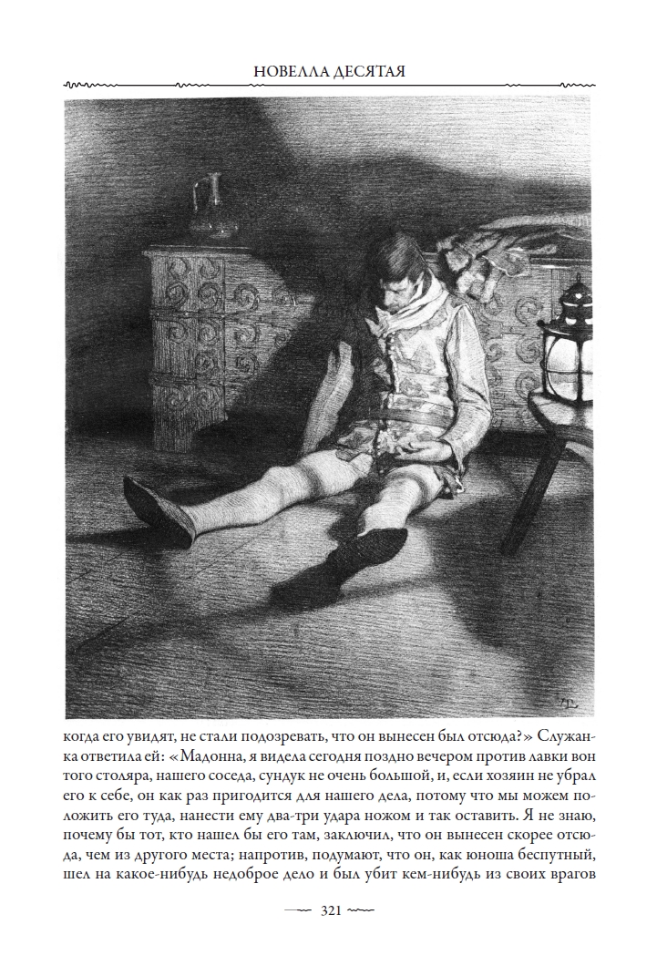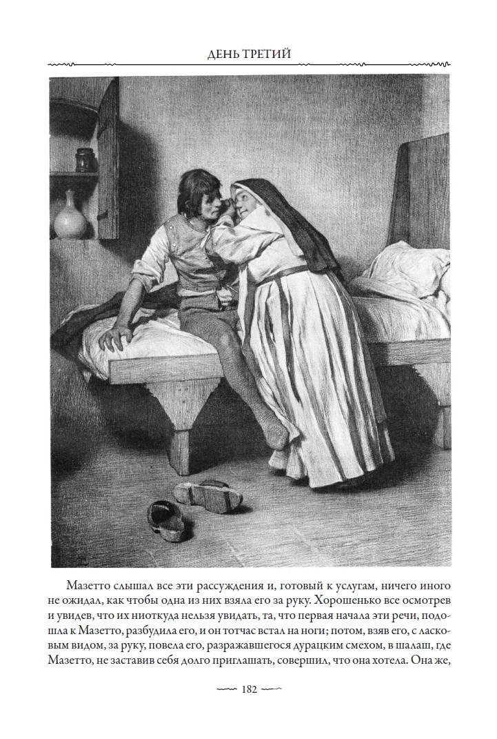 В настоящем издании «Декамерон» приводится в переводе профессора А. Н. Веселовского (1838–1906). Александр Николаевич окончил историко-филологический факультет Императорского Московского университета, после чего был командирован в Европу, чтобы изучать историю всеобщей литературы. За границей Веселовский завязал знакомства с различными научными деятелями и зарекомендовал себя как приятный, начитанный человек и выдающийся ученый. В 1864 году он отправился в Италию, где провел много времени в библиотеках, исследуя старинные рукописи итальянских авторов. Одним из результатов этой поездки стал перевод самого знаменитого произведения Боккаччо. В отличие от своих современников Веселовский стремился как можно точнее передать авторскую манеру повествования, благодаря чему его труд стал первым полным переводом «Декамерона» на русский язык. В данной книге переведенный Александром Николаевичем текст «Декамерона» украшают изящные иллюстрации итальянского живописца и графика Тито Лесси (1858–1917).