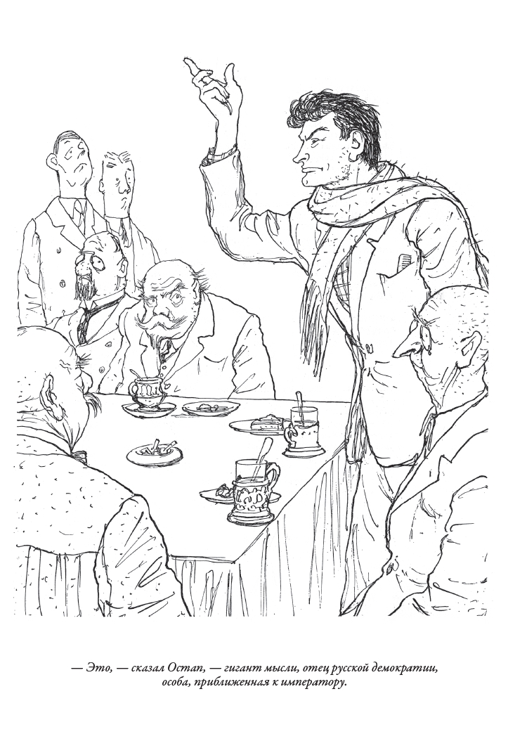 Книгу украшают иллюстрации, выполненные Кукрыниксами. Под этим странным псевдонимом творили три художника - Михаил Васильевич Куприянов, Порфирий Никитич Крылов и Николай Александрович Соколов. Вряд ли в Советском Союзе нашелся 6ы человек, который не видел их рисунков, шаржей или карикатур. По выразительным плакатам Кукрыниксов можно проследить все ключевые события войны СССР с фашистской Германией, а также главные моменты послевоенного времени, происходившие на мировой политической арене. Знакомство трех художников состоялось, когда они еще были студентами московского ВХУТЕМАСа - Высших художественно-технических мастерских. Начинали Кукрыниксы свой творческий путь с иллюстраций к рассказам и сатирических рисунков, которые едко высмеивали окружающую действительность. Умение подмечать смешное и мгновенно отражать его в своем творчестве прекрасно проявилось в иллюстрациях Кукрыниксов, которые они выполнили для романов Ильфа и Петрова. Их рисунки созвучны стилю «Двенадцати стульев» и «Золотого теленка» - они легки, ироничны и полны задорного юмора.