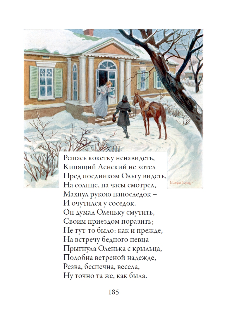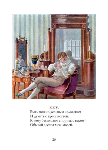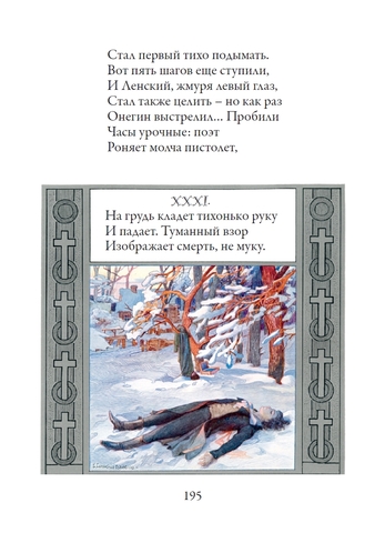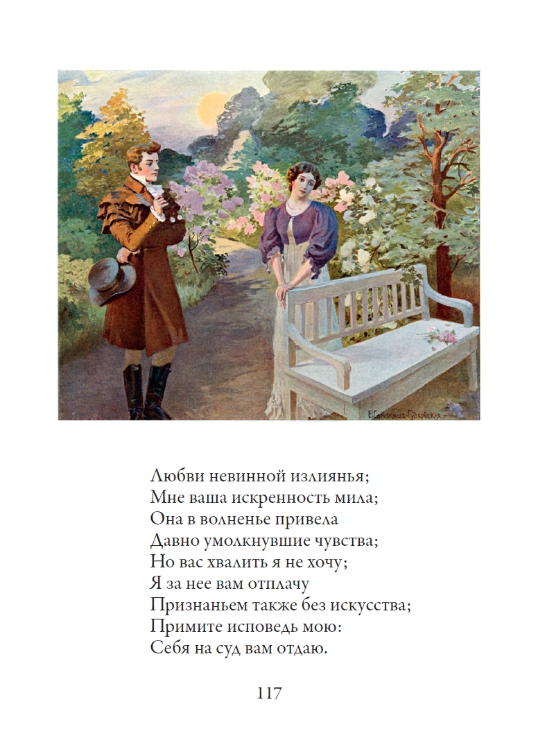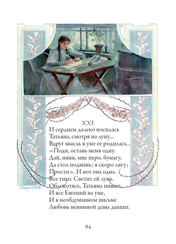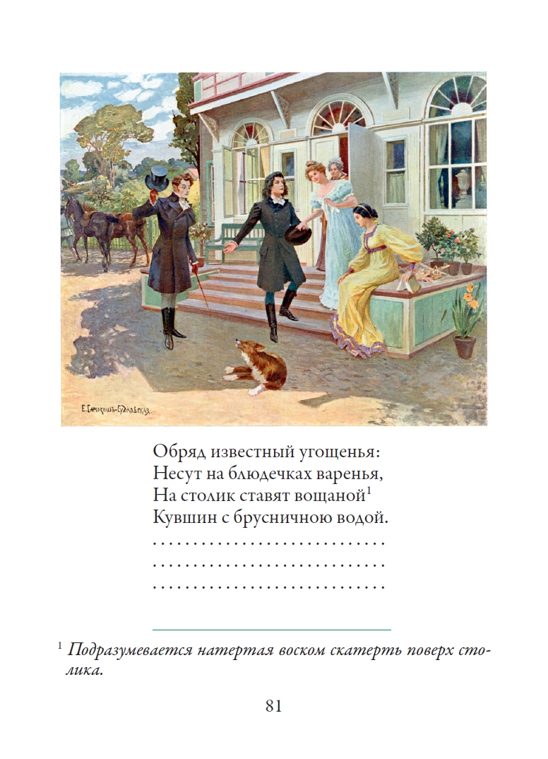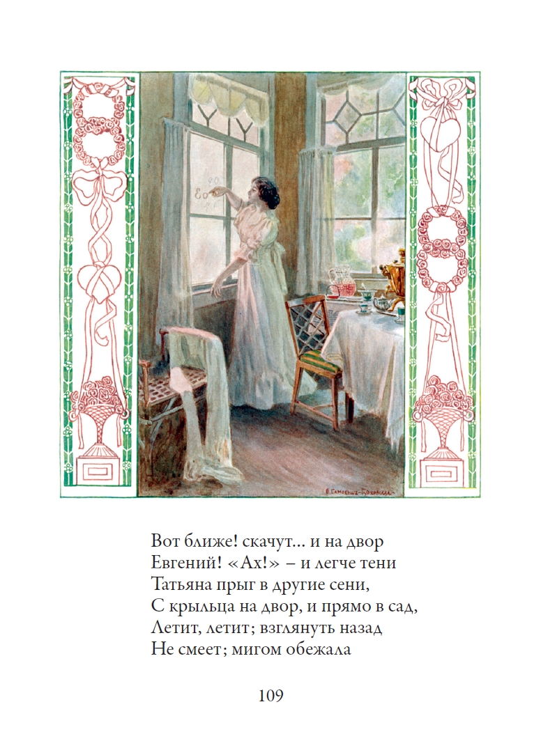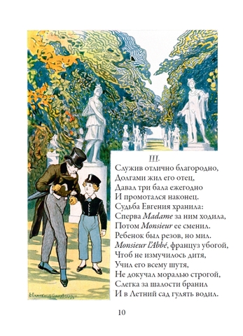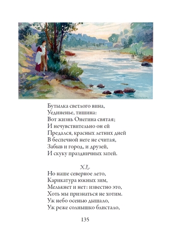 В издание включены классический текст «Евгения Онегина», а также многочисленные комментарии литературоведа Льва Ивановича Поливанова (1838–1899), варианты некоторых строф и частей романа, сохранившихся только в рукописях поэта, и текст «Путешествия Онегина», восстановленный библиографом Афанасием Федоровичем Бычковым (1818–1899) по рукописной тетради Пушкина. Книгу украшают великолепные цветные иллюстрации Елены Петровны Самокиш-Судковской (1863–1924).