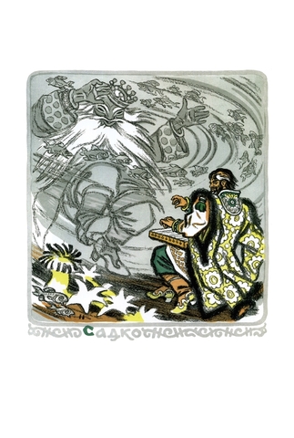 Николай Михайлович Кочергин (1897–1974) — советский живописец и график, плакатист, театральный художник. Будущий иллюстратор родился в селе Всесвятское Московской губернии. В юности он окончил Строгановское художественно-промышленное училище, а затем вступил добровольцем в Красную армию. К книжной иллюстрации Николай пришел не сразу: долгое время он занимался искусством политического плаката — его работы оказали влияние на следующие поколения плакатистов. Художник также рисовал карикатуры, выполнял театральные декорации к спектаклям и оформлял популярные в то время журналы: «Огонек», «Красная панорама», «Во- круг света». В послевоенные годы Николай Михайлович увлекся иллюстрированием художественной литературы, в частности детской. С его рисунками выходили из печати «Конек-горбунок» П. Ершова и «Калевала» в пересказе А. Любарской, сказки народов Азии и русские народные сказки. Николай Кочергин оставил заметный след в истории развития детской книжной иллюстрации и получил звание заслуженного художника РСФСР.