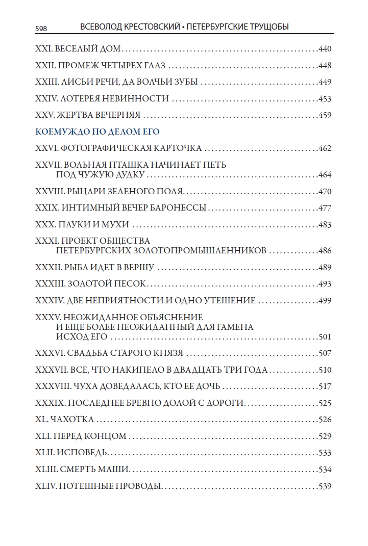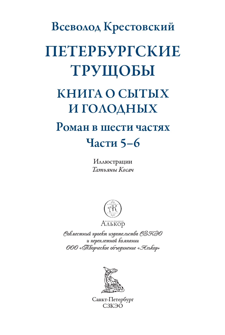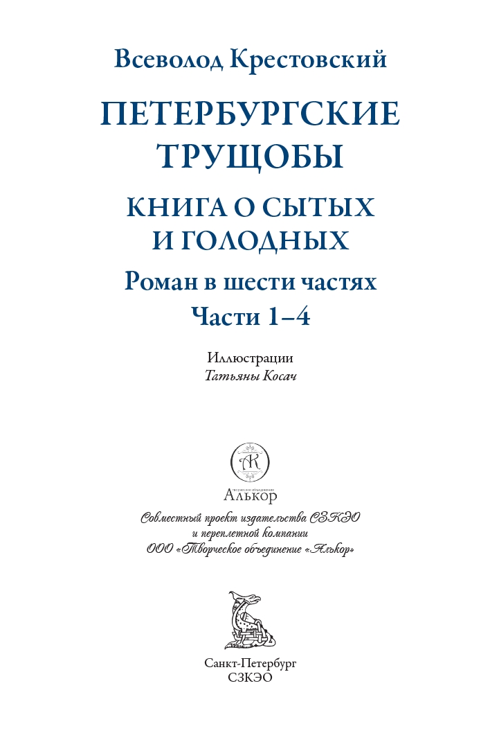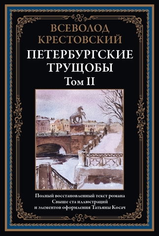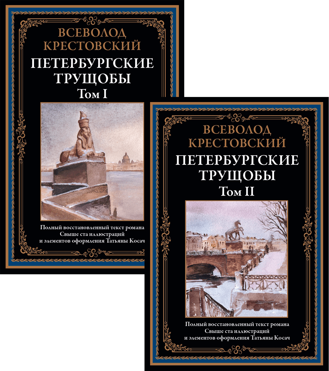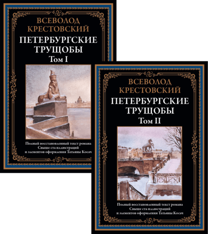 В ходе переизданий «Петербургские трущобы» лишились нескольких глав, вычеркнутых царскими цензорами. После революции роман с возвращенными главами был напечатан издательством Academia, однако в этой публикации было много неточностей и смысловых искажений. В данной книге восстановленный текст романа впервые приводится без сокращений и опечаток, с которыми он публиковался на протяжении многих лет. Великолепные цветные иллюстрации петербургских пейзажей, приведенные в книге, выполнила талантливая художница Татьяна Евгеньевна Косач (1974).