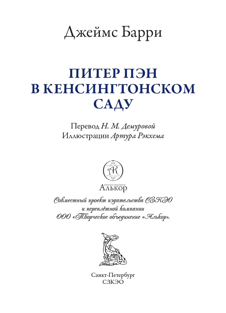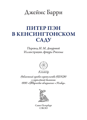 «Питер Пэн в Кенсингтонском саду» (1906) — сказочная повесть шотландского писателя Джеймса Барри (1860–1937), ставшая самым ранним его произведением о мальчике, который не желал взрослеть. Эта история откроет читателям, что происходило с неутомимым Питером Пэном до того, как он стал предводителем потерянных мальчиков и повстречал юную Венди. Текст представлен в переводе доктора филологических наук Нины Михайловны Демуровой (1930–2021). Иллюстрации выполнил известный английский художник Артур Рэкхем (1867–1939).