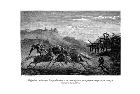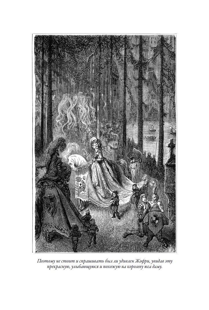 Жан-Бернар Мари-Лафон (1810–1884) — французский лингвист, историк и журналист. Будущий литератор родился в Окситании, на юге Франции, в семье врача. К 1830 году Жан-Бернар получил образование и перебрался в Париж, где стал редактором лингвистического журнала. Помимо того, он занялся художественной литературой и опубликовал несколько научных работ. Мари-Лафон писал об истории, культуре и языке своего родного края. В частности, он изучал особенности провансальского (окситанского) языка, который был распространен в южной части Франции. Его также называли языком трубадуров, поскольку именно на провансальском языке многие средневековые поэты сочиняли свои произведения. Стремясь популяризировать окситанскую литературу, Мари-Лафон переводил и литературно обрабатывал некоторые старинные литературные сочинения. Одним из них стал рыцарский роман о Жофри, созданный неизвестным автором приблизительно в XIII веке. Его сюжет повествует о юноше, который желает проявить свою рыцарскую доблесть и отомстить за оскорбление, нанесённое неким недругом великому королю Артуру. Жофри отправляется на поиски злодея, претерпевая всевозможные приключения, обретая любовь и преодолевая множество опасностей. Роман о Жофри — единственное произведение артуровского цикла на окситанском языке. В 1856 году Мари-Лафон издал переработанный текст романа под названием «Рыцарь Жофри и прекрасная Бруниссенда» (Les Aventures du chevalier Jaufre et de la belle Brunissende). В данном издании история об удивительном путешествии благородного героя проиллюстрирована гравюрами знаменитого Гюстава Доре.