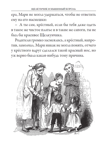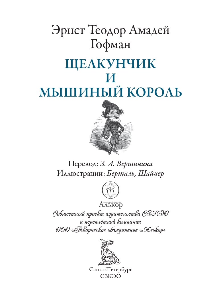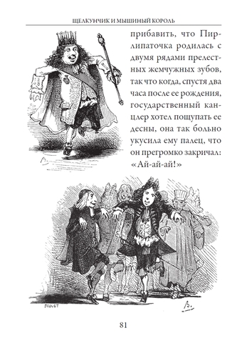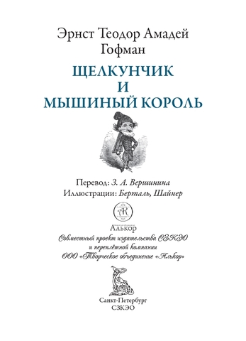 В книге представлена сказочная новелла знаменитого немецкого писателя-романтика Эрнста Теодора Амадея Гофмана «Щелкунчик и Мышиный король». Текст дан в переводе под редакцией З. А. Вершининой. Издание украшают рисунки французского художника Шарля д’Арну (1820—1882), творившего под псевдонимом Берталь и чешского художника Артуша Шайнера (1863—1938).