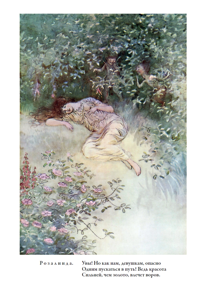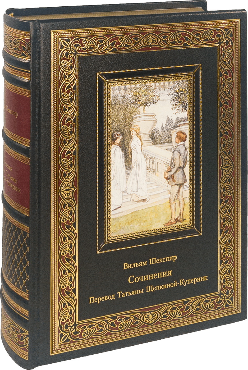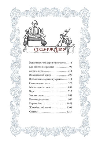Считается, что английский поэт и драматург Вильям Шекспир (1564–1616) родился в многодетной семье Джона Шекспира, мастера по изготовлению перчаток, и его жены Мэри Арден. В детстве Вильям любил слушать сказки, которые рассказывала ему мать; эти сказки оказали влияние на его литературное творчество. Будущий литератор посещал грамматическую школу в Стратфорде, а в восемнадцать лет женился на Энн Хэтэуэй, с которой обзавёлся тремя детьми. В возрасте около двадцати лет Шекспир оставил Стратфорд и перебрался в Лондон, где увлёкся театром: сначала молодой человек пробовал себя в роли актёра, а позднее ставил уже собственные пьесы. Долгие годы Шекспир оставался драматургом в театральной труппе «Слуги лорда-камергера» (по прошествии нескольких лет переименованной в «Слуги короля»), для которой написал существенную часть своих произведений. Именно члены труппы трудились над созданием первого сборника шекспировских сочинений, без которого пьесы талантливого драматурга были бы утеряны навсегда. Они выкупали права на тексты, убирали в них искажения, привнесённые недобросовестными издателями, и приводили их в соответствие с первоначальным видом. Сборник «Первое фолио» вышел в свет в 1623 году, через семь лет после смерти Шекспира. Он включал тридцать шесть пьес (из тридцати восьми ныне известных): комедии, исторические хроники и трагедии; поэзия в него не вошла. Заслуженные лавры Шекспир получил ещё при жизни, теперь же он является одним из самых востребованных авторов, чьи пьесы пользуются популярностью во всём мире, а издания его драматических и лирических произведений продаются многочисленными тиражами. С некоторыми его известнейшими сочинениями можно познакомиться в данном издании. В него вошли одиннадцать пьес Шекспира («Всё хорошо, что хорошо кончается», «Как вам это понравится», «Мера за меру», «Венецианский купец», «Весёлые виндзорские кумушки», «Сон в летнюю ночь», «Много шума из ничего», «Буря», «Зимняя сказка», «Ромео и Джульетта», «Король Лир»), одна поэма («Жалоба влюблённой») и несколько сонетов. Переводы всех текстов выполнены русской писательницей, поэтессой и драматургом Татьяной Львовной Щепкиной-Куперник (1874–1952).