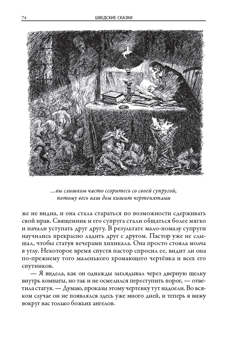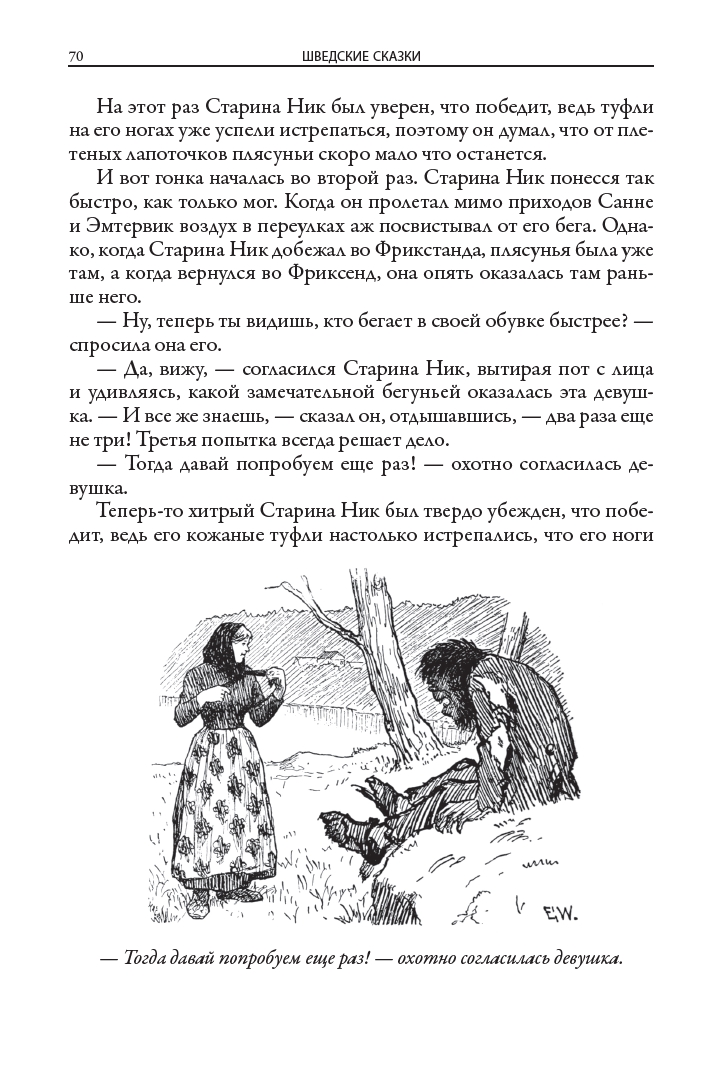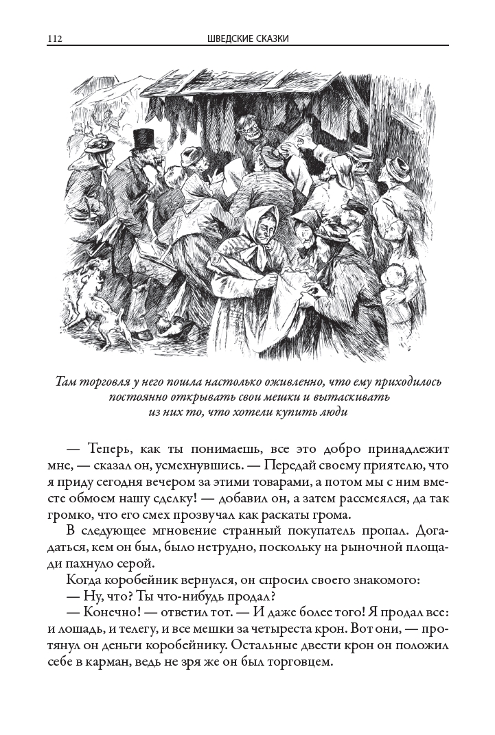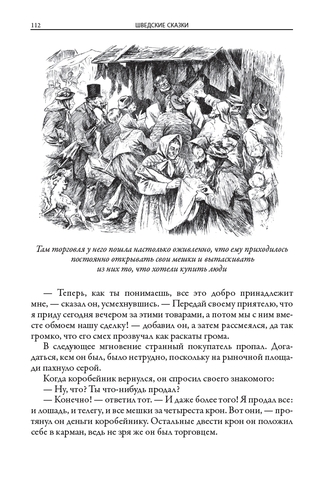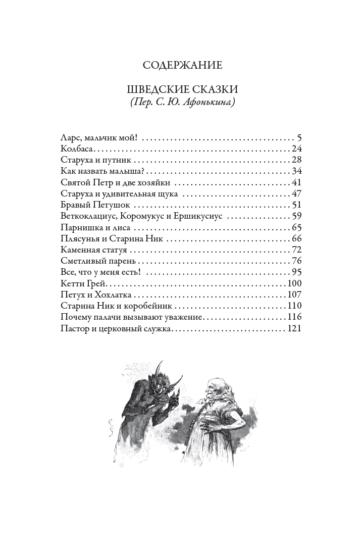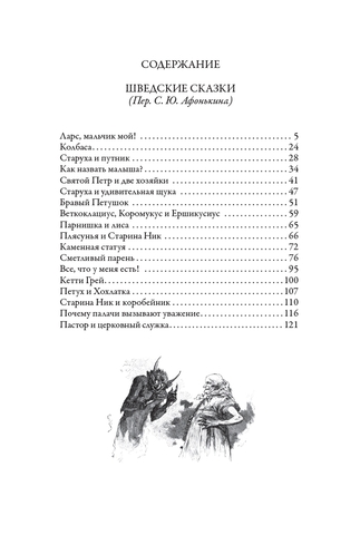 Книга включает восемнадцать старинных шведских народных сказок. Они знакомят взрослых и юных читателей с могущественными чародеями и говорящими животными, всесильными королями и умелыми селянами. В этих сказках всегда торжествует справедливость и царит атмосфера волшебства, помогающая чудесным образом сбываться невозможному. Герои сказок сборника бывают простодушными и коварными, любезными и грозными; наглядно представить их помогли два мастера иллюстраций: Эрик Вереншёлль (1855–1938) и Карл Ларссон (1853–1919).