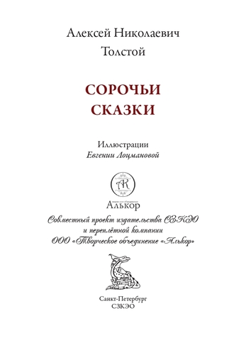 В данном издании представлены «Сорочьи сказки» русского писателя Алексея Николаевича Толстого (1883–1945). Впервые изданные в начале минувшего столетия, они остаются актуальными и в наши дни. Легкие забавные истории, написанные ярким и образным языком, учат юных читателей доброте, искренности и дружбе. Чудесные цветные иллюстрации к сказкам выполнила талантливая художница Евгения Николаевна Лоцманова (1989).